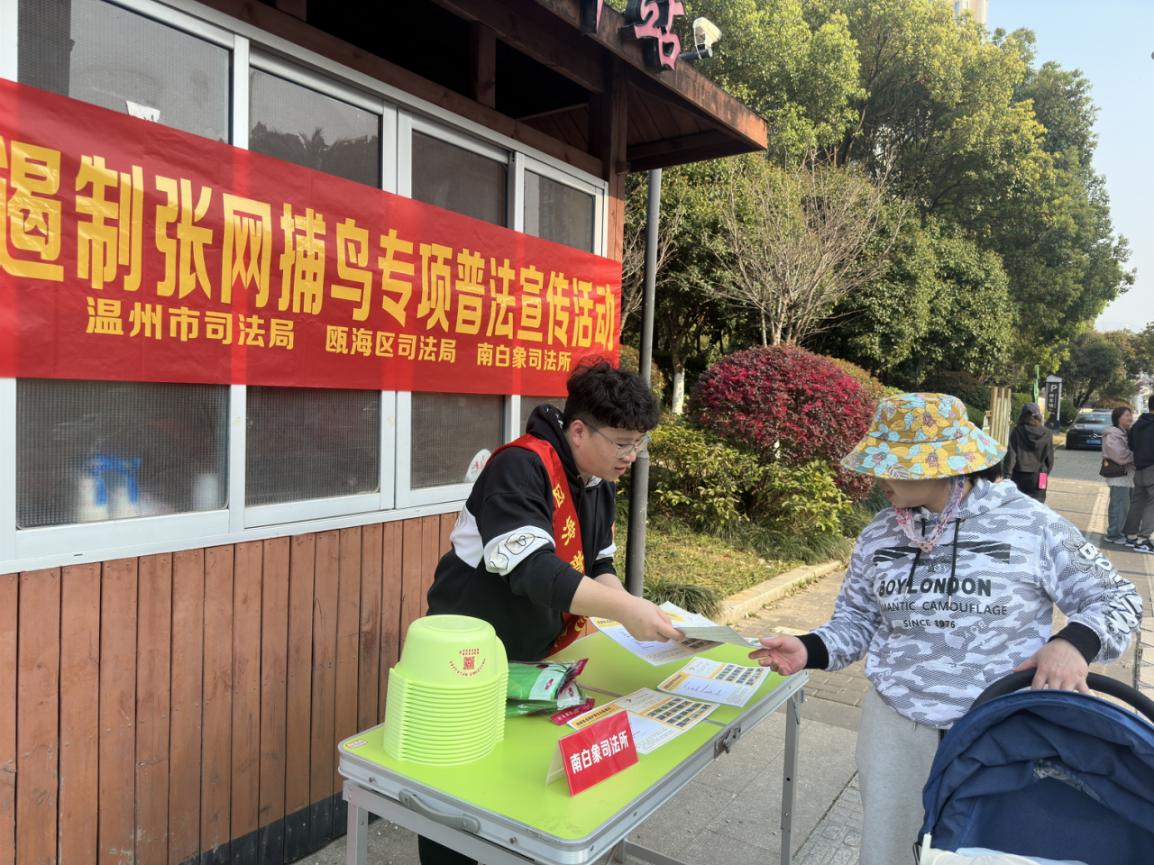 活动现场,司法所工作人员通过悬挂横幅、发放宣传资料、设立咨询台等方式,向过往居民宣传《中华人民共和国野生动物保护法》、《中华人民共和国刑法》、《社区矫正法》等相关法律法规知识,详细讲解张网捕鸟的危害和需要承担的法律后果,引导居民自觉抵制非法捕鸟行为,积极参与到保护野生动物的行动中来。