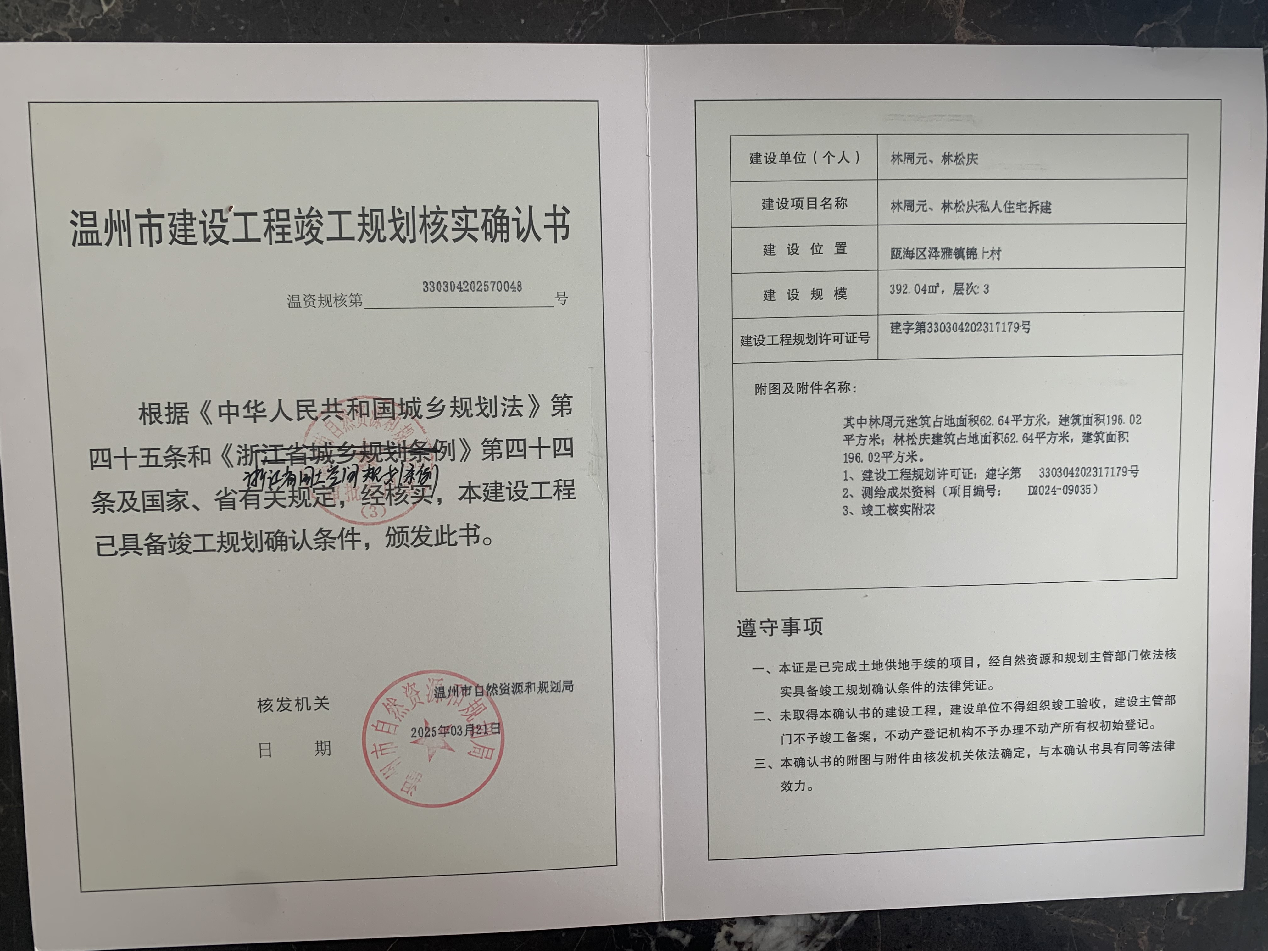 林周元 林松庆私人住宅建设工程规划核实确认书批后公告